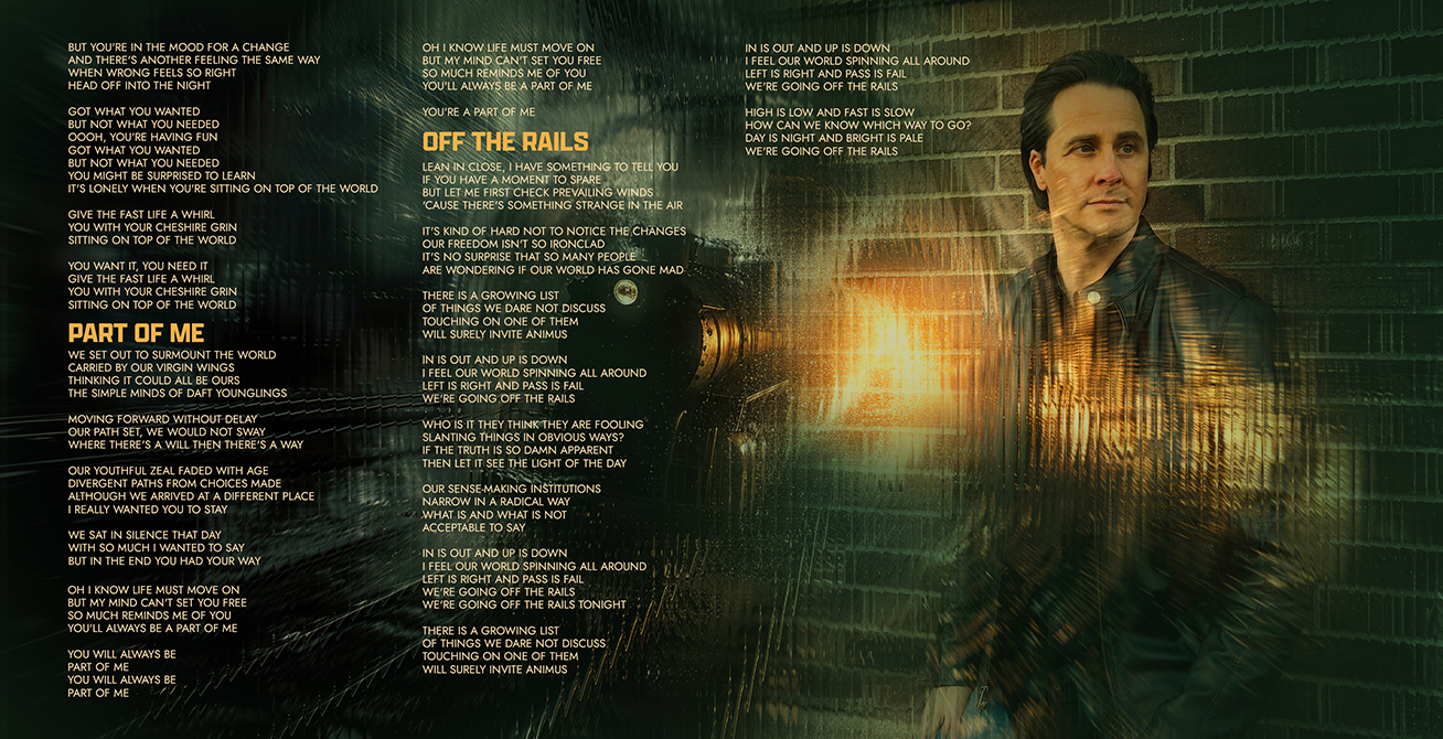 This TODD MICHAEL HALL "OFF THE RAILS" album was released in CD, Vinyl, Cassette and digital platform versions. All artwork and packaging design created by Jean Michel at DSNS Art.